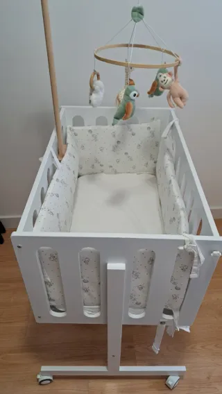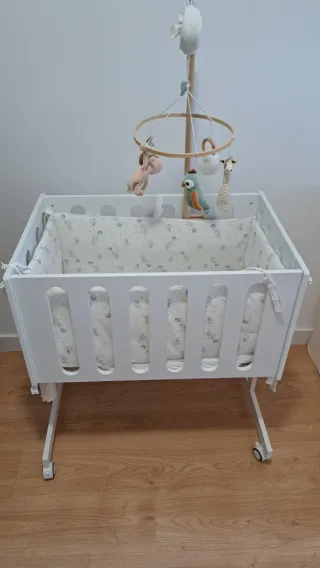 Minicuna de colecho muy funcional para tener a tu bebe cerca por las noches.Esta muy bien cuidada.Sirve como cuna o como parque o sillon.Se vende en su caja original y con edredon y sabanas.