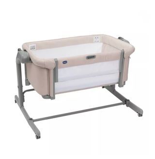 Minicuna colecho de la marca Chicco, ideal para tener al bebé cerca. - Color rosa y blanco. - Estructura metálica gris. - Ruedas para facilitar el movimiento. - Es mecedora - Altura ajustable
