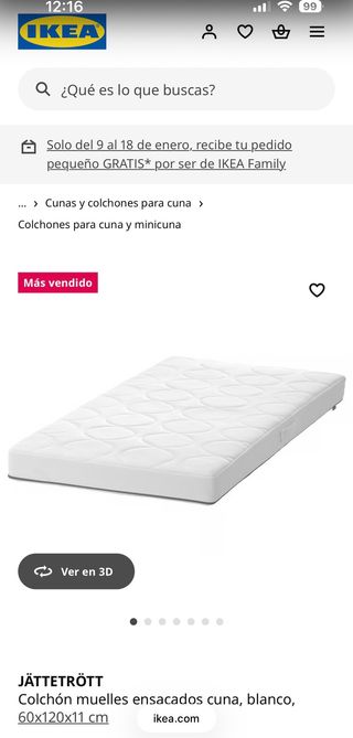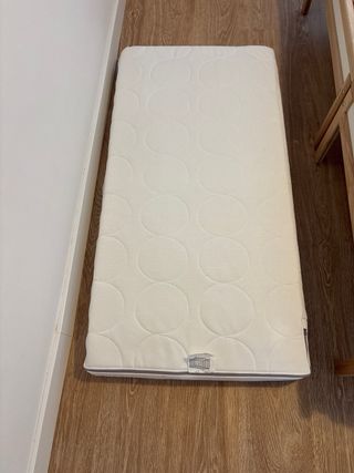 Colchón para cuna o minicuna de IKEA, modelo JÄTTETRÖTT. - Colchón de muelles ensacados. - Color blanco. - Medidas: 60x120x11 cm. -No llega a 3 años de uso.