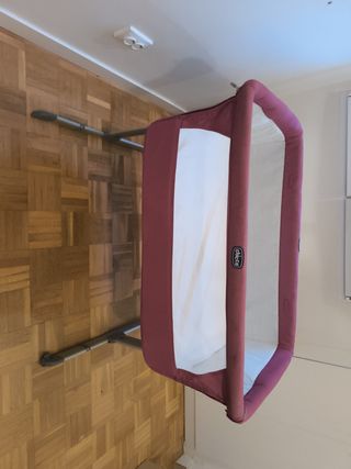 Minicuna Chicco Colecho, modelo Lorada del 2015, en color rosa. Está en buen estado. - Ideal para colecho. - Estructura de aluminio. - Tejido suave y acolchado.