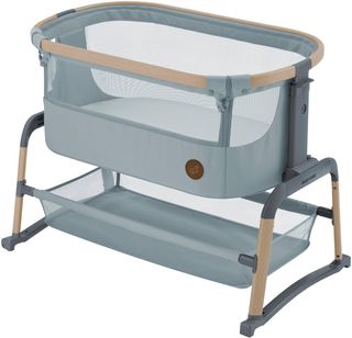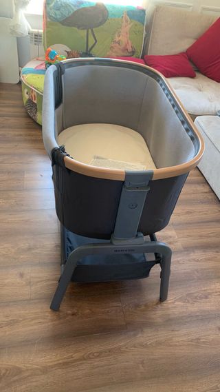 Minicuna de colecho de la marca Maxi-Cosi, ideal para tener al bebé cerca durante la noche. Su diseño permite ajustarla a la cama. - Color gris oscuro. - Estructura de metal y madera. - Incluye colchón.