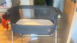 Minicuna de colecho con un diseño moderno y práctico. Perfecta para tener al bebé cerca durante la noche. Ideal para viajes, colchón con muy poco uso. - Incluye colchón. - Laterales de malla transpirable. - Estructura gris.