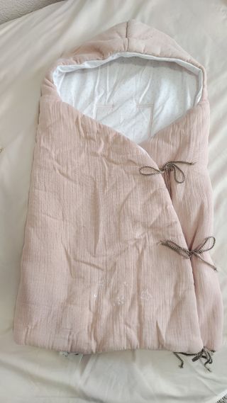 Son 3 productos, ver imagenes. 1.Saco arrullo de bebé adaptable a todos los modelos de capazo y grupo 0, con ojales para los tirantes. Ideal también para minicuna y llevar al bebé en brazos. Tejido de algodón acolchadito, color rosa maquillaje con el interior blanco con estrellas rosas. Se puede atar con unos cordones y abajo tiene una cremallera. Puede lavarse en la lavadora. Está arrugado de estar guardado. Su precio original es de 59.90€ Igual que nuevo. 2. saco con cremallera para dormir y que no se destapen 3. colchoneta de silla de paseo todo es universal