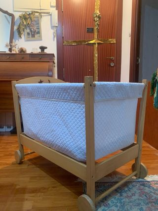 preciosa minicuna,con ruedas y plegable muy cómoda a la hora de guardar o transportar, venta en persona