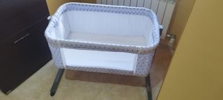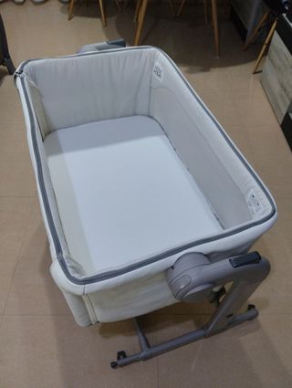 Minicuna de colecho de la marca Bebe Confort en color gris. Permite tener al bebé cerca durante la noche. - Estructura metálica. - Laterales de malla transpirable. - Altura regulable. - lleva 2 colchones