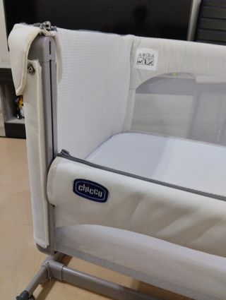 Minicuna Chicco en perfecto estado, ideal para los primeros meses del bebé. Es ligera y fácil de transportar. - Estructura de aluminio. - Tejido transpirable. - Se pliega fácilmente para su almacenamiento.