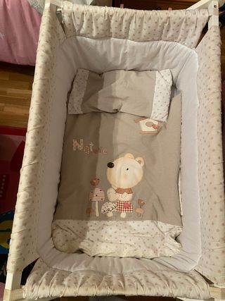 Minicuna en perfecto estado. Incluye colchón de espuma, edredón, 2 juegos de sábanas verano y un juego de sábanas gorditas para inverno.