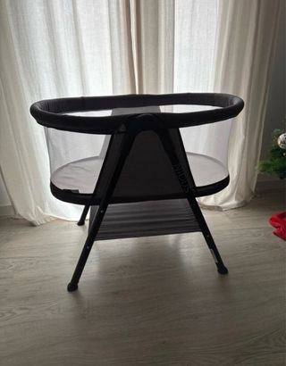 Minicuna Nidus en perfecto estado, utilizada muy poco. Incluye un móvil para entretener al bebé. - Estructura de madera y tela. - Laterales de malla transpirable. - Cesta porta objetos. - Patas antideslizantes. - Ventanas de red a los laterales. - Plegable para fácil almacenamiento y transporte.