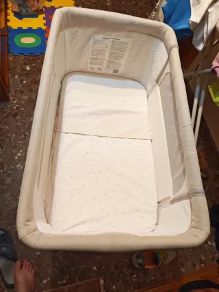 Minicuna colecho Big Toes Flex ideal para tener al bebé cerca durante la noche de forma cómoda y segura. Cuenta con 5 alturas ajustables para adaptarse a tu cama y facilitar ✔ Incluye colchón ✔ Diseño moderno con estructura de madera ✔ Laterales de malla para una mejor ventilación y visibilidad ✔ Es plegable y fácil de transportar y guardar ✔ Incluye mosquitera, bolsa de transporte, ruedas, kit colecho y cesta inferior de almacenamiento En muy buen estado. Perfecta para los primeros meses del bebé. Medidas: 100 cm (ancho) x 50 cm (fondo) x 85 cm (alto) Opcional: protectores de colchón y sábanas a juego disponibles para la venta.