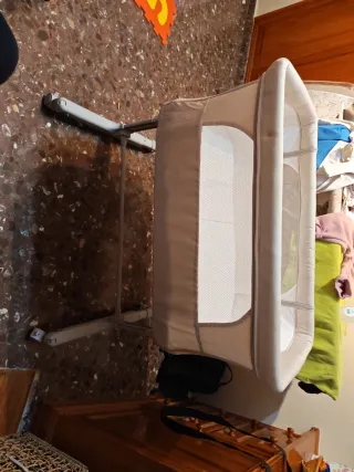 Minicuna de la marca Jane, ideal para los primeros meses del bebé. Su diseño moderno y funcional la hace perfecta para cualquier hogar. - Estructura resistente y segura. - Laterales de malla transpirable. - Incluye colchón ecus care - Patas ajustables así como altura regulable - ideal para colecho gracias a una banda ajustables - incluye protector de colchón de la marca y varios juegos de sábanas Usado principalmente para dejar cojines y otras cosas de poco peso, por lo que está prácticamente nueva😅 Precio negociable. Preferiblemente recogida en persona.