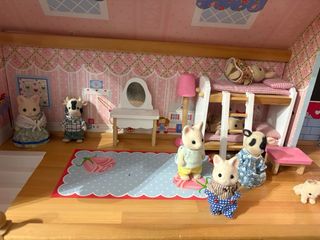 Casa de muñecas de madera de la marca KidKraft, con 3 pisos y varias habitaciones con muebles. Ideal como regalo de navidad, es la casita de muñecas de los cuentos. - Diseño de tres pisos. - Incluye mobiliario y muchos muñecos de la marca Sylvanian families (6 conejos, 3 gatos y 2 vacas) - Escaleras interiores para acceder a las plantas. - Medidas 60x73x26cm Precio actual en Amazon sin los muñecos 112€.