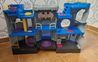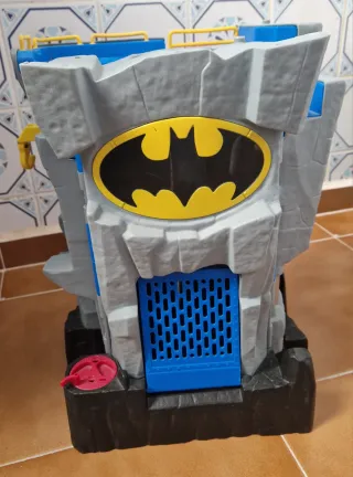 Batcueva de juguete con el logo de Batman. - Diseño inspirado en la roca. - Puerta frontal con rejilla azul. - Base negra. - Detalle rojo en la base. Seminuevo, con alguna señal de uso Las fotos forman parte de la descripción