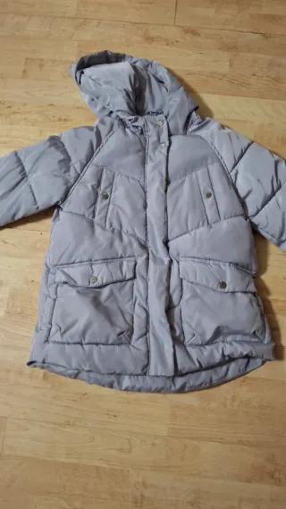 Plumífero infantil con capucha en color gris plata. - Diseño acolchado. - Bolsillos delanteros con botones. - Cierre de botones. - Capucha integrada. Super cómodo y muy calentito!