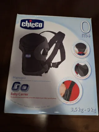 Mochila porta bebés de la marca Chicco, modelo Marsupio Go. Diseñada para acompañar el crecimiento del bebé con simplicidad y versatilidad. - Apta desde 0 meses. - Soporta entre 3,5 kg y 9 kg.