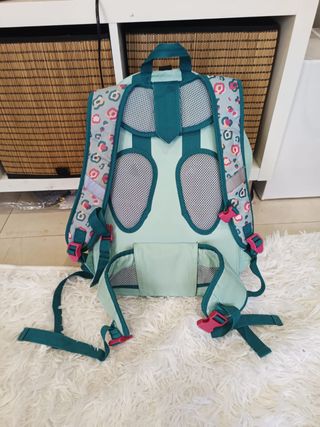 Mochila escolar adaptable a un carro, lo que permite llevarla tanto en la espalda como con ruedas. Diseño: Presenta un estampado floral colorido. Ergonomía: Cuenta con un espaldar ergonómico y un sistema de flujo de aire para mayor comodidad y ventilación. Funcionalidad: Dispone de múltiples compartimentos, incluyendo uno para portátil, bolsillos para botellas y un organizador interno. Se ha usado pero esta como nueva