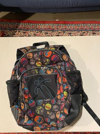 Mochila escolar con un diseño colorido y moderno. Diseño ergonómico para proteger la espalda del niño. Grande, con bastante capacidad. - Estampado geométrico multicolor. - Compartimentos múltiples: 4 con cremalera más otros en interior y 2 bolsillos laterales. - Correas ajustables. Está usada pero no demasiado y la hemos conservado bastante bien. Sólo venta en persona.