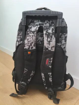 Mochila escolar con ruedas de la marca Movom modelo Sk8. Está en buen estado y es perfecta para llevar libros y material escolar. - Diseño chulo con estampado de skate. - Ruedas resistentes para facilitar el transporte. - Asa de mano y correas para llevarla a la espalda. Mochila impecable por dentro.