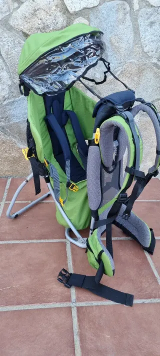 Mochila portabebés Deuter para trekking, ideal para llevar a los más pequeños en tus aventuras al aire libre. La hemos usado una vez. El toldo se puede poner y quitar. - Estructura robusta y ergonómica. - Capota protectora solar. - Múltiples compartimentos de almacenamiento. - Tirantes y cinturón lumbar acolchados.