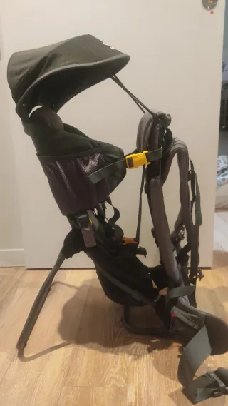 Mochila porteadora de bebés y niñ@s de hasta 22 kg. Muy cómoda y transpirable. perfecta para ir a la montaña, hacer trekking o simplemente pasear por la ciudad. Los pequeños van muy seguros y sujetos. No tenemos la capota, por lo demás está en muy buen estado.