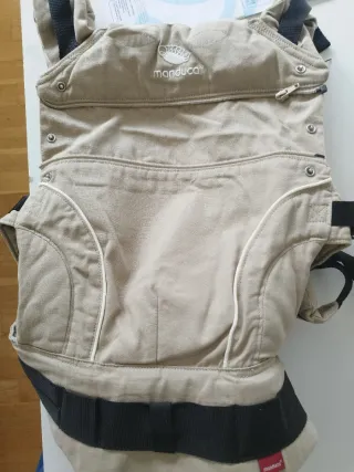 Mochila portabebés de la marca Manduca, ideal para llevar a tu bebé de forma cómoda y segura. Muy poco usada - Color beige y negro. - Diseño ergonómico.