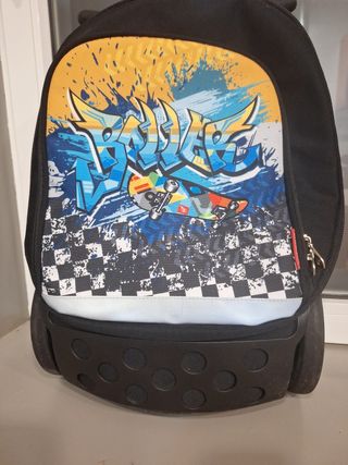 Mochila escolar Totto con diseño de bloques de construcción. Cuenta con un carro desmontable para facilitar su transporte y permitir su lavado. Bolsillo porta PC de 15,4'' Bolsillo para botellas Organizadores internos Espaldar ergonómico Bolsillo para correas Correas ajustables No se hacen envíos del producto, venta directa en persona, preferiblemente local.