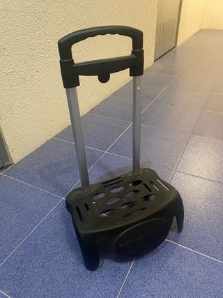 Carro ligero y práctico para transportar mochilas. - Estructura de aluminio. - Asa ergonómica de plástico negro. - Base de plástico negro con orificios. Tengo dos carros iguales para vender.