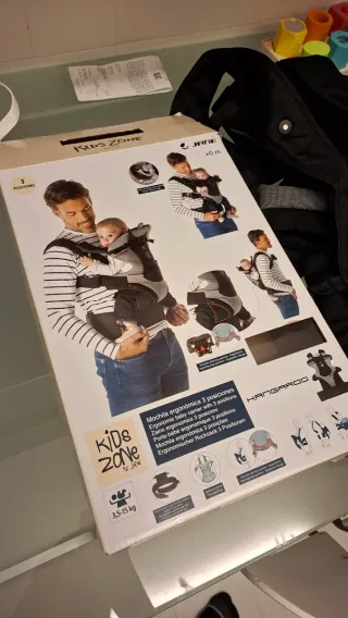 Mochila ergonómica de la marca Jane, modelo Kangaroo, con 3 posiciones. - Diseñada para bebés desde recién nacidos (+0 meses). - Soporta un peso de 3,5 a 15 kg. - Posición ergonómica para el bebé. - Cierre de seguridad en las correas. - En caja original Su único defecto es que le falta un botón lateral de los dos, pero nunca lo habíamos usado :)