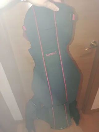 Mochila portabebés de la marca BabyBjörn, ideal para llevar al bebé de forma cómoda y segura. - Diseño ergonómico. - Tejido interior rojo y exterior negro.