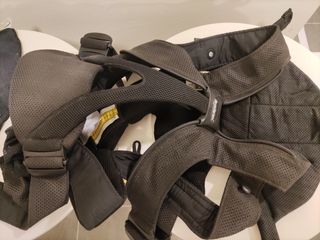 Mochila portabebés de tela transpirable de la marca Babybjorn. Muy cómoda y fácil de usar.