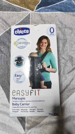 Vendo mochila portabebés Chicco EasyFit, ideal desde el nacimiento (0m+). No hemos llegado a usarla porque nos juntamos con 4 porteadores, pero está lavada y por eso no tiene la etiqueta. -Apta desde el nacimiento hasta los 9kg. - Sistema ergonómico y fácil de colocar. - Probada en posición M. - Segura para las caderas del bebé (Instituto Internacional de Displasia de Cadera). - Fácil de usar como una camiseta.