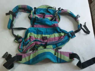 Mochila evolutiva y ergonómica para bebés desde 3,5 kg y 56 cm. Compuesto por tela transpirable, algodón orgánico 100%. Está impecable. Con manual de instrucciones para ajustar a la talla de cada bebé y para portear tanto por delante como a la espalda. Tiene un panel ajustable en ancho y alto para adaptarse al crecimiento del niño. La apertura de las piernas acolchada y se adapta también al ancho de espalda del porteador. Con capucha integrada para sujetar la cabeza del bebé mientras duerme o para proteger del viento/sol. Apenas se ha usado.