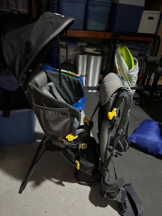 Mochila portabebés Deuter, ideal para trekking y montaña. Tiene muy poco uso, tres días. Este modelo no tiene los elementos metálicos por lo que es más ligero y fácil de guardar o muy poco espacio. Puedes ver más información en Decathlon su precio de 120 euros en la tienda - Diseño cómodo y adaptable. - Tejido resistente y duradero. - Correas ajustables para mayor comodidad.