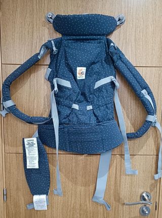 mochila de porteo ergonomica para bebes de entre 5,5 y 20 kilos. es ergonomica lo que hace que se ajuste bien al bebe que lleve una posicion adecuada para espalda y piernas. ajustable perfectamente para el adulto para no sifrit dolores y peso en espalda, caderas y hombros. usado muy poco esra como nuevo.