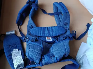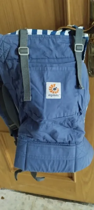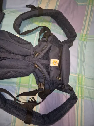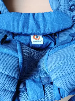 Mochila de porteo Ergobaby en color azul. Se cortaron las etiquetas y todo pero nuestro hijo nunca le gustó ir en porteo, no pongo nuevo porque se intento usar 3 veces sin éxito. - Tejido de malla transpirable. - Cinturón lumbar acolchado. - Tirantes ajustables y acolchados. - Bolsillo frontal con cremallera.