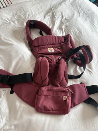 Mochila portabebés Ergobaby en color burdeos. Ideal para llevar al bebé de forma cómoda y segura. - Malla transpirable en toda la mochila. - Posibilidad de varias posiciones de porteo. - Cinturón lumbar y tirantes acolchados. - Capucha para el sol y la privacidad.