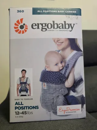 Mochila portabebés Ergobaby 360, ideal para bebés desde recién nacidos hasta niños pequeños. - Diseñada para todas las posiciones. - Soporta pesos de 5.5 a 20 kg (12-45 lbs). - Modelo All Positions Baby Carrier.