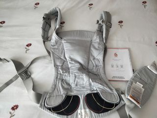 Mochila ergonómica en color gris, apta desde recién nacido hasta 20 kg sin necesidad de cojín reductor. Tres posiciones de porteo: delante, cadera y espalda. Tirantes acolchados, cinturón con soporte lumbar y tejido suave y resistente. Muy cómoda para el día a día o largas caminatas. En muy buen estado.