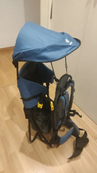 Mochila portabebés de montaña en excelente estado, con muy poco uso. - Diseño ergonómico para el porteo. - Estructura resistente y ligera. - Capota protectora incluida. - Tirantes y cinturón acolchados para mayor comodidad.