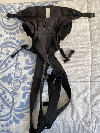 Porteo de bebé. Ajuste perfecto a tu cuerpo y al del bebe respetando su posición natural y su desarrollo. Para bebés de 3,7 a 20 kg, crece con el niño y con sistema de velcros en el cinturón se ajusta para adaptarse a la apertura de la cadera del bebé. Tejido de alta calidad: invierno verano. Incluye bolso para guardarla. Colocacion sencilla, una vez ajustado puedes poner y sacar al bebe fácilmente. Puedes encontrar numerosos vídeos que te ayudan a realizar los ajustes adecuados. En fotos se muestran instrucciones con figuras. Cumple normas de seguridad. Su coste fue de 165 €. Solamente se probó una vez, sin usar.
