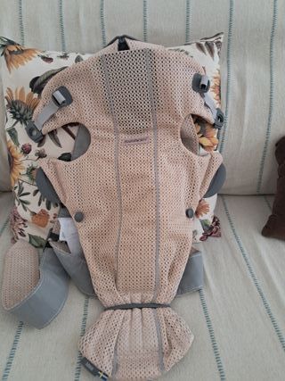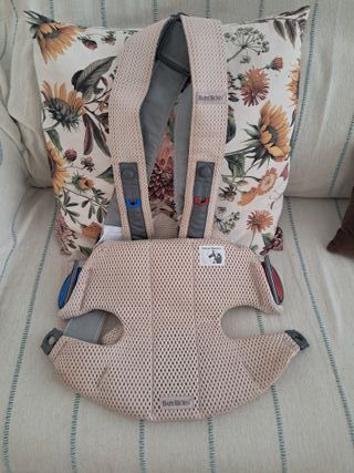 Mochila portabebés BabyBjörn en color beige, ideal para llevar a tu bebé de forma cómoda y segura. Su diseño ergonómico y material transpirable la hacen perfecta para el día a día. - Tejido de malla transpirable. - Cierre de seguridad. - Ajustable para el bebé. De 0 a 12 meses. Esta impecable. Es una marca nordica buenísima, busca el.modelo eb su web, se vende por 119 euros