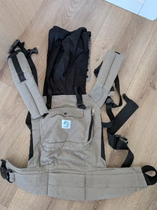Mochila de porteo para bebé en color beige. Se encuentra en muy buen estado y es muy cómoda. El bebé puede ir hacia delante o hacia atrás. - Diseño ergonómico. - Tirantes acolchados. - Hebillas de seguridad.