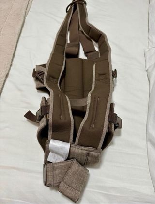 Mochila portabebés de la marca Jane, en un tono marrón jaspeado. - Diseño ergonómico. - Tirantes ajustables. - Etiqueta de la marca visible. - UN SOLO USO