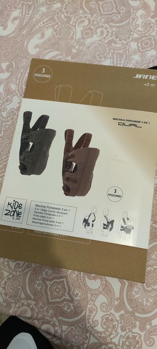Mochila portabebés Jane Dual 3 en 1, en perfecto estado, ya jo se ha estrenado - Se adapta a 3 posiciones distintas. - Incluye instrucciones. - Peso máximo soportado: 3.5-9 kg. - Diseño ligero y cómodo.