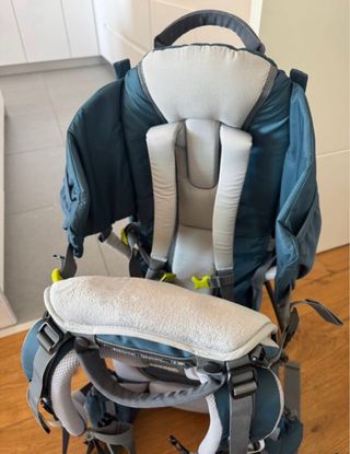 Mochila portabebés Deuter, ideal para montaña y trekking. A partir de unos 6 meses que se mantienen erguidos. Le hemos dado muy poco uso está como nueva. Es muy cómoda, mi peque incluso se dormía. - Tiene parasol - Acolchado en la zona de la cabeza. - Correas ajustables.