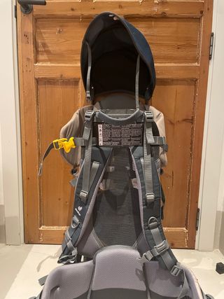 Mochila de trekking diseñada para llevar a bebés de forma cómoda y segura. - Estructura robusta y ligera. - Arnés ajustable para el bebé. - Múltiples compartimentos de almacenamiento. - Capota solar integrada. - aguanta hasta 20 kg.