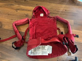 Mochila porta bebés Ergobaby en color rojo. Perfecta para llevar al bebé de forma cómoda y segura. - Diseño ergonómico. - Capucha ajustable. - Tirantes acolchados.