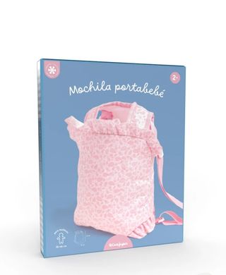 Mochila de juguete para llevar muñecos, marca El Corte Inglés. Nueva, sin estrenar. Es de color rosa con un estampado de hojas. - Para muñecos de 30-46 cm. - Edad recomendada: 2+ años.