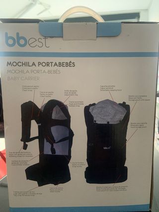 Mochila portabebes , marca bbest, con capucha extraible, bolsillo con cremallera y bolsillo para la capucha. Sin estrenar, totalmente nueva.
