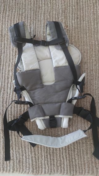 Mochila porta bebés de la marca BabyBjörn en color gris. Diseñada para llevar al bebé de forma cómoda y segura. - Tejido suave y acolchado. - Tirantes ajustables. - Hebillas de seguridad. Muy poco uso