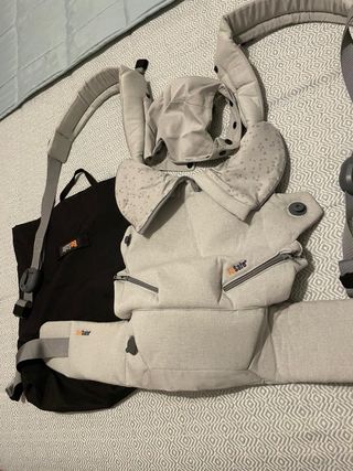 mohila portabebé ergobaby (precio real 119,90€) Combina a la perfección la simplicidad y la comodidad en una mochila diseñada para garantizar el vínculo con el bebé mientras crece. Soporte lumbar acolchado para mayor comodidad Capucha para proteger al bebé del sol y mantener su privacidad durante la lactancia. valida desde los 0 hasta los 48 meses.